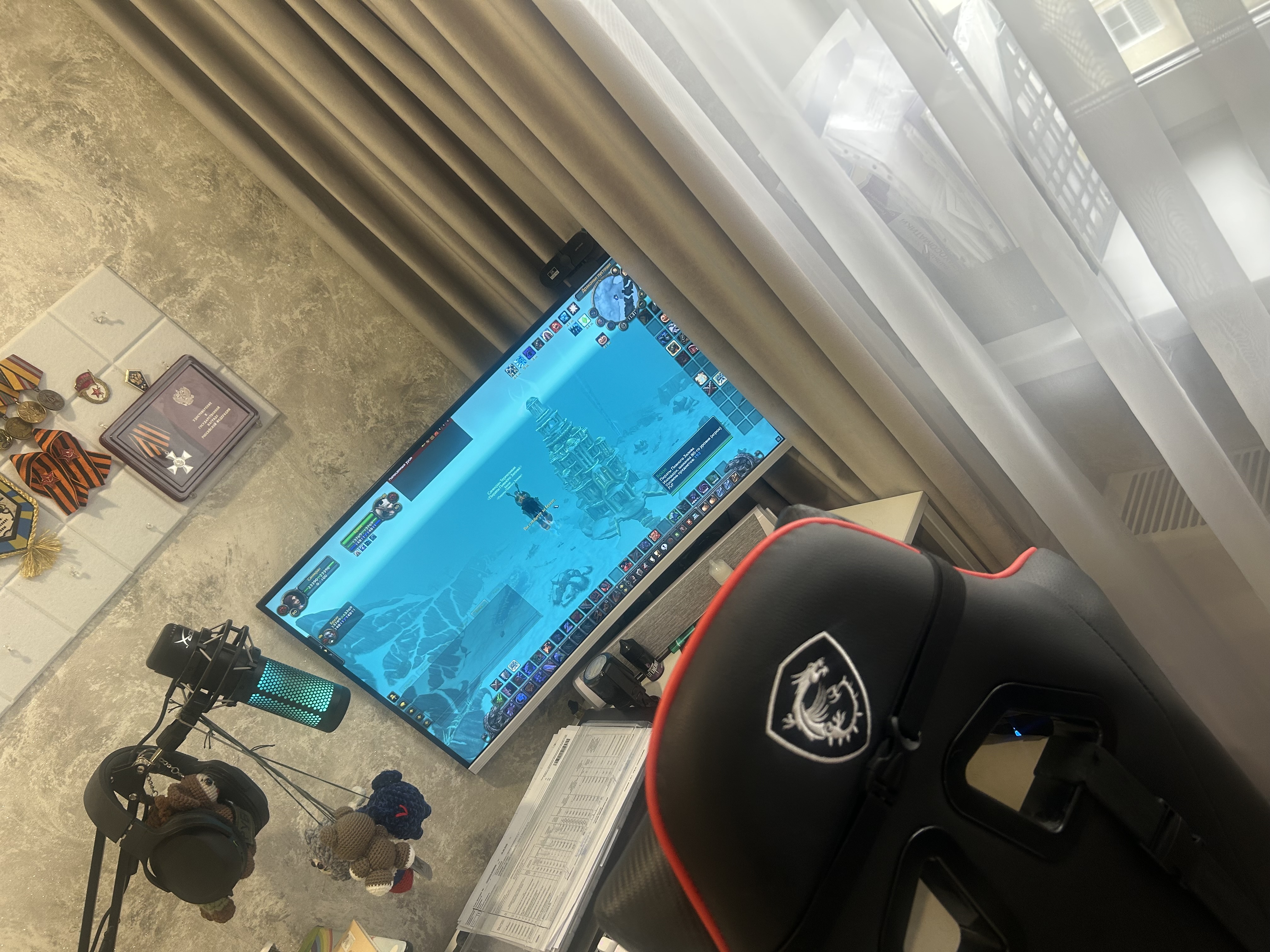 Изи бис , сам вояка в свободное время катаю на наздоре, место бомбическое , не буду делать фото ночью с своими рджиби подсветками и тд, просто уютное хорошее место особенно кресло и в целом у меня свой угол как алтарь дома , к которому жена не подходит 🤣 потому что там мои награды и прочее , дабы не быть наказанной 😁единственный кто имеет туда доступ это кот 😁